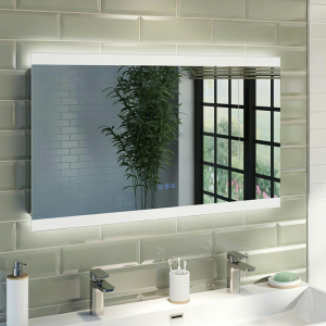Arezzo Matt Black 800 x 500mm Backlit LED Bathroom Mirror with Hanging Shelf & Anti Fog