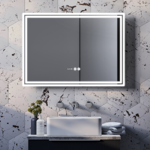Arezzo 500 x 700mm Recessed LED Illuminated Bathroom Mirror Cabinet with Touch Sensor, Shaver Socket & Anti Fog