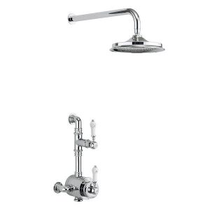 Burlington Guild Square Thermostatic Single Outlet Concealed Shower Valve with Fixed Shower Arm & Head Chrome
