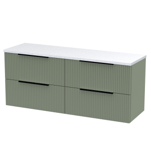 Arezzo Matt Dark Green Wall Hung Double Basin Vanity Unit (1205mm w. Brushed Brass Handles)