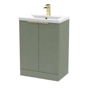Arezzo 600 Matt Black Floor Standing 2 Drawer Vanity Unit with Matt Black Slimline Basin + Brushed Brass Handles