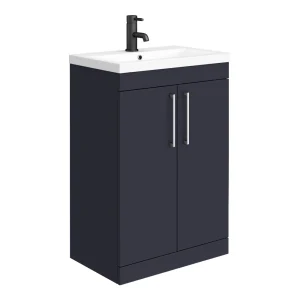 Old London Twilight Blue Art Deco 750mm Angled Cabinet with Grey Marble Basin Top