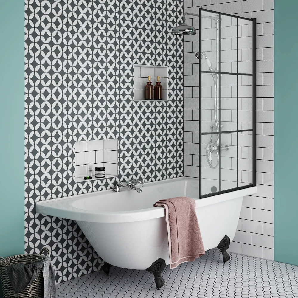 Appleby 1700 Roll Top Shower Bath with Matt Black Grid Screen + Leg Set