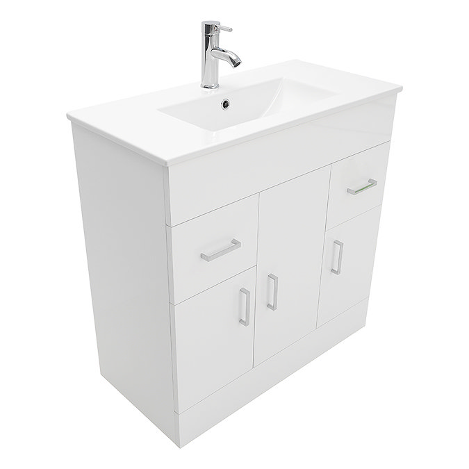 AquaSure AquaSure Toreno PVC Vanity Unit with Minimalist Ceramic Basin – 800mm Modern Gloss White – 100% Waterproof
