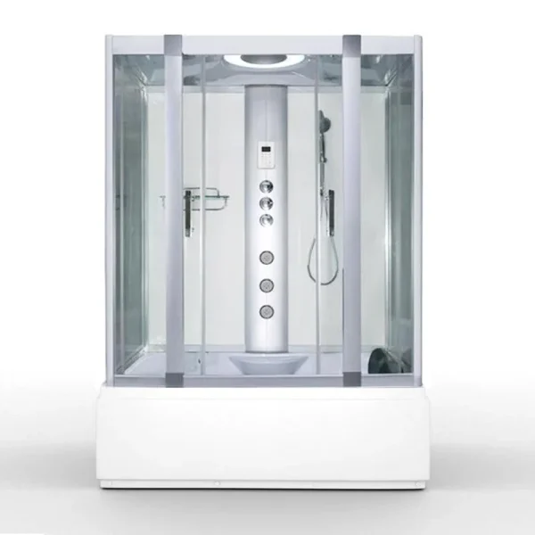 The Alto W1 Steam Shower with Whirlpool Bath, a compact Whirlpool bath with steam shower cabin, monsoon, body jets and hand shower in Polar White colour.