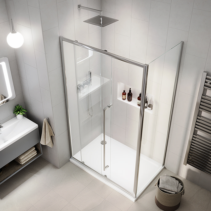 Please note the minimum and maximum adjustment measurements. The enclosure will not fit flush to the side of the shower tray to allow room for tiling. The shower tray is not included. You can choose from our wide selection of trays in various styles and colours.