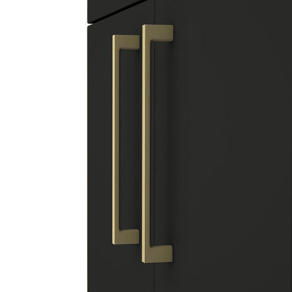 The unit comes with a matching matt black slimline basin, which adds a touch of luxury and sophistication to the overall look. The basin is thoughtfully designed to be both functional and visually appealing. One of the standout features of this vanity unit is the brushed brass square bar handles, which are not only eye-catching but also easy to grip and use. They add a unique and modern touch to the unit, elevating its overall appeal.