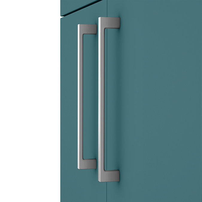 The contemporary matt green Arezzo furniture range, with it’s clean lines this 600mm wide vanity unit is perfect for renewing the style in any bathroom. It’s stylish modern design hides all unsightly pipework creating a neat modern look. A internal shelf provides generous storage space for your toiletries, helping to keep your bathroom clutter free. Features eye-catching and stylish matt teal green finish with on-trend modern polished chrome square bar handles.
