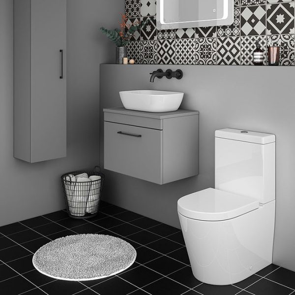 The contemporary matt grey Arezzo furniture range, with it’s clean lines this vanity unit is perfect for renewing the style in any bathroom. Supplied with a gloss white curved rectangular no tap hole counter top basin, It’s stylish modern design hides all unsightly pipework creating a neat modern look. A soft closing drawer provides generous storage space for your toiletries, helping to keep your bathroom clutter free. Features a eye-catching and stylish matt grey finish with a on-trend modern matt black square bar handle. This matt grey vanity with counter top basin will look especially smart with an Arezzo sleek wall mounted tap to really emphasise the contemporary look.