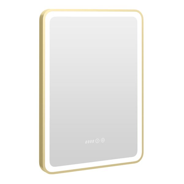 Arezzo 500 x 700mm Touch Control Illuminated Border Mirror – Dimmer, Demister, Colour Changing Light & Time/Temperature Display – Brushed Brass