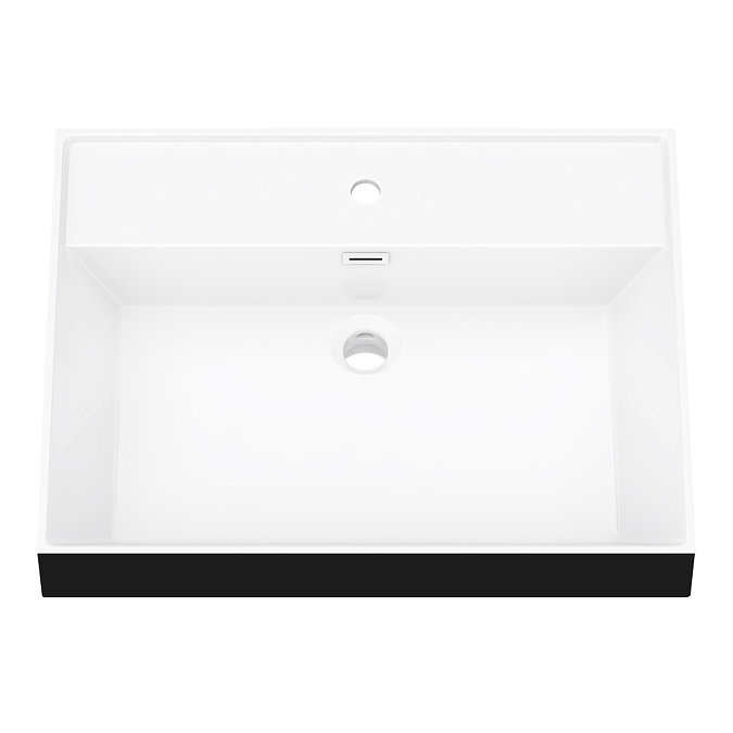 - Comes with a quality 605mm wide thin-edged matt black and white polymarble basin with slotted overflow