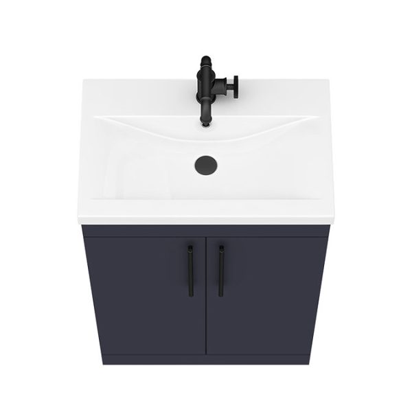 Arezzo Industrial Style 600 Matt Blue Floor Standing Vanity Unit with Ceramic Mid-Edged Basin + Matt Black Knurled Round Handles