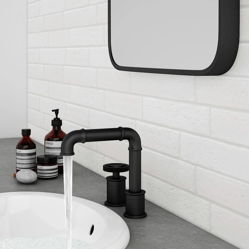 The stylish Arezzo industrial-style matt black 2 tap hole basin mixer tap is perfect for adding a striking finishing touch to your contemporary bathroom. Crafted to the highest standards, this stunning deck mounted tap features a stripped-down aesthetic with a round knurled textured tap head, perfect for creating an eye catching industrial look in your bathroom. Plated in a matt black finish which is highly resistant to corrosion. Recommended for use with inset/recessed countertop basins.