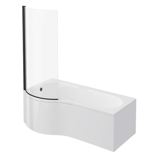 Arezzo P-Shaped Shower Bath (1700mm with Curved Matt Black Profile Screen & Front Panel)