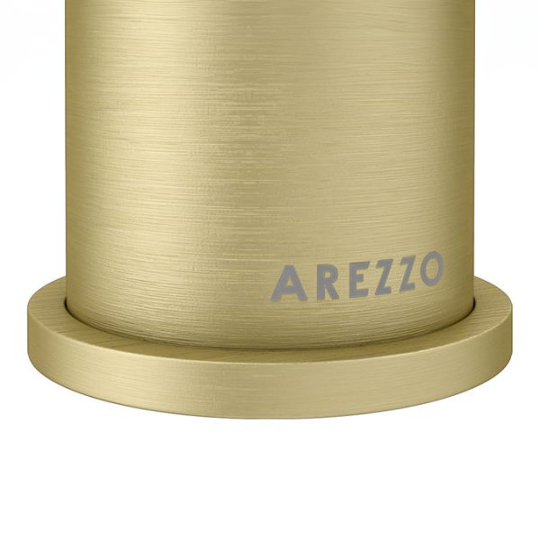 The striking Arezzo Round Brushed Brass High Rise Mono Basin Mixer Tap features a tactile body topped with an easy to use single lever that controls water temperature and flow. This 286mm tall cylindrical tap is crafted from solid brass for durability and is designed for use with counter top basins and bowls. The minimalist profile of this brushed brass mixer tap will give your bathroom a sleek look. It comes with flexi hoses and fixings included for easy installation. Pair it with the Arezzo Matt White Round Counter Top Basin for a coordinated appearance.