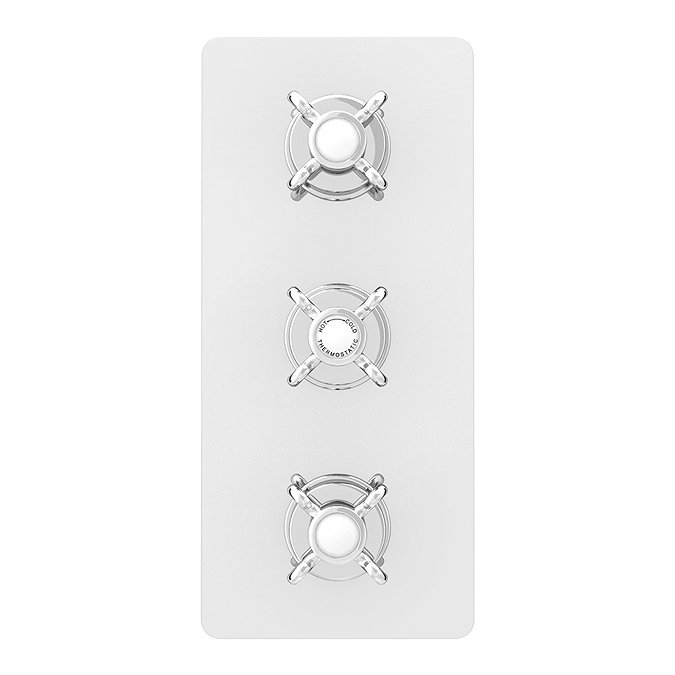 The Astoria triple concealed thermostatic shower valve with 8 inch shower head, wall mounted arm, and slider rail kit offers thermostatic showering through three easy-to-operate controls. It operates two shower accessories, either separately or simultaneously: the fixed head and the slide rail kit. The slider rail kit consists of a classic slide rail, a 1.5m hose, and a shower handset. Manufactured using high-quality chrome and brass, our range of Edwardian shower valves will look outstanding in any shower enclosure.