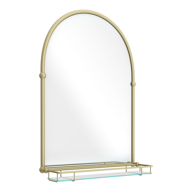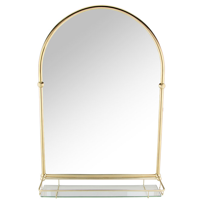 Chatsworth Traditional 700 x 490mm Arched Mirror with Glass Shelf – Brushed Brass