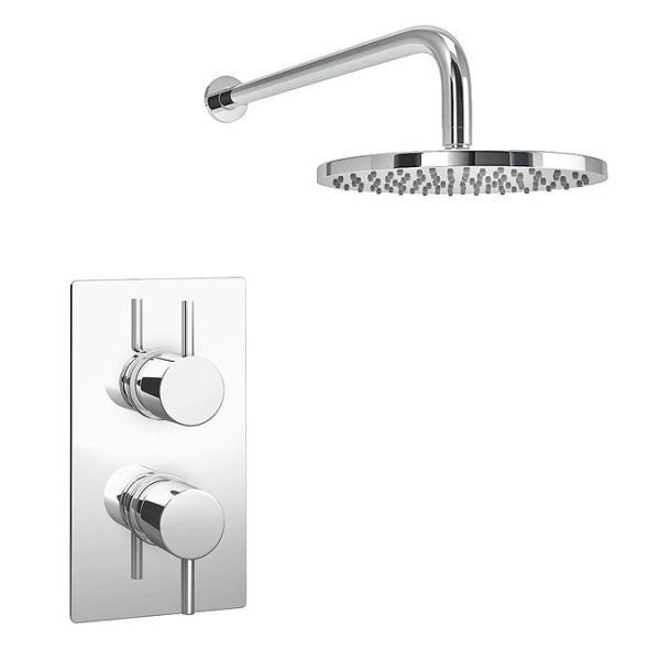 The Cruze Concealed Modern Shower Package with Valve is a stylish addition to any contemporary bathroom suite. This concealed shower valve features a rectangular faceplate with two easy-to-operate round handles, allowing you to adjust the water temperature and flow to your exact preference. The faceplate can be fitted vertically or horizontally, depending on your preference. A chrome-plated finish gives this thermostatically controlled shower a gleaming effect, and it’s easy to clean with just a quick wipe. The overhead fixed shower head is adjustable and comes with a swivel joint and arm for easy installation.