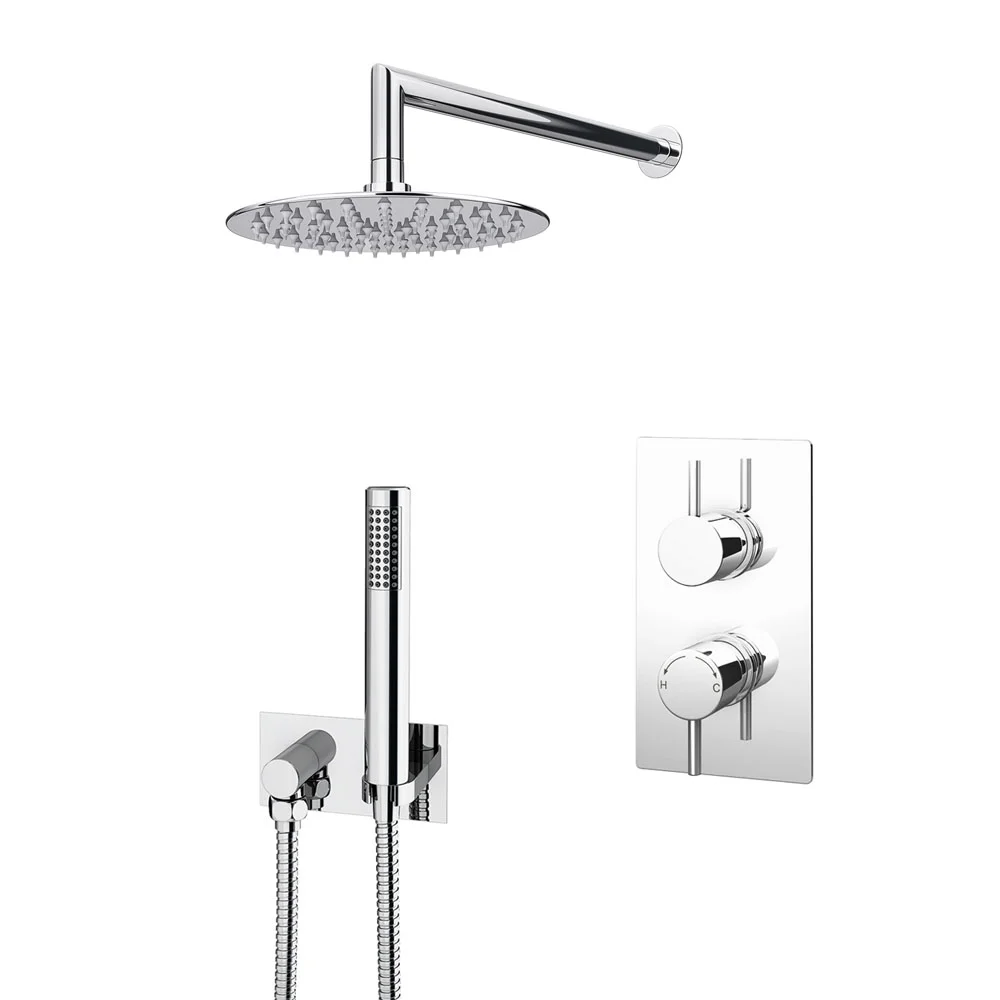 This stunning Cruze concealed shower package equips you with everything necessary to transform your enclosure or wet room into a stylish designer space. It features a minimalist concealed thermostatic shower valve adorned with round handles.