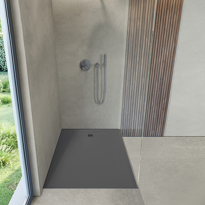 The Duravit Sustano 1400 x 900mm Rectangular Shower Tray in matt dark grey is a sustainable shower tray made from DuraSolid Nature. It is made of stone-based mineral composite and has a non-porous, easy-to-clean surface that is extremely robust and UV-resistant. The shower tray can be installed flush, semi-flush, or standing. The drain diameter is 90mm. The Duravit shower tray offers six color options, The shower tray is 1400 x 900mm in size and has a rectangular shape. The shower tray can be cut to size and is customisable for a range of onsite conditions.