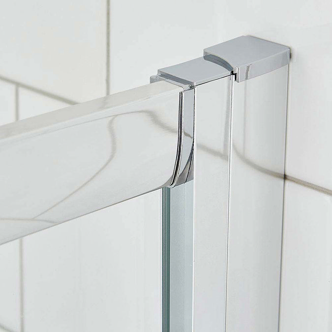 A 1200 x 900mm offset quadrant shower enclosure featuring 5mm toughened safety glass. The frame has a satin chrome finish, and has sliding doors for easy access.