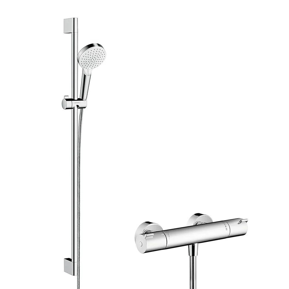 hansgrohe Crometta Vario Thermostatic Shower System with 90cm Shower Slider Rail Kit – 27813400