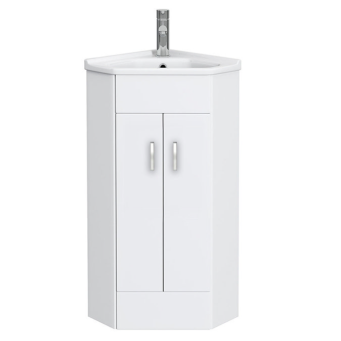 Alaska High Gloss White Corner Cabinet Vanity Unit with Ceramic Basin
