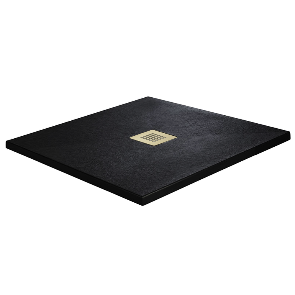 Imperia Black Slate Effect Square Shower Tray 900 x 900mm Incl. Brushed Brass Waste