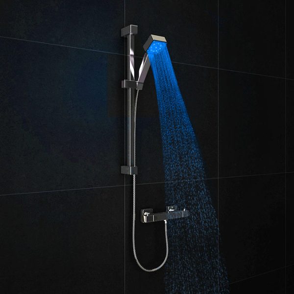 The square LED chrome finish shower handset lights up in three different colours depending on the water temperature. Manufactured from durable, corrosion-resistant chrome-plated plastic, this LED shower head is self-powered by the force of running water, requiring no batteries.
