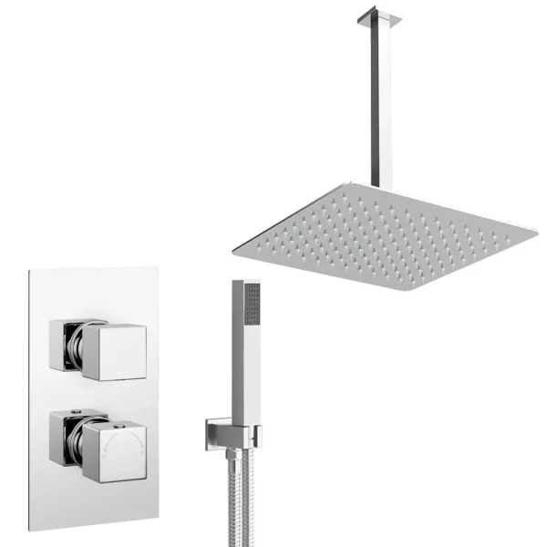 Milan Twin Shower Valve with Diverter including Outlet Elbow, Handset and Ultra-Thin Head with Vertical Arm