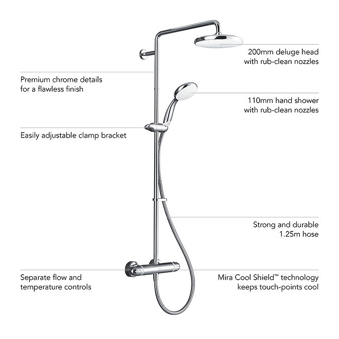 • Mira Cool Shield™ technology keeps touchpoints cool for extra peace of mind