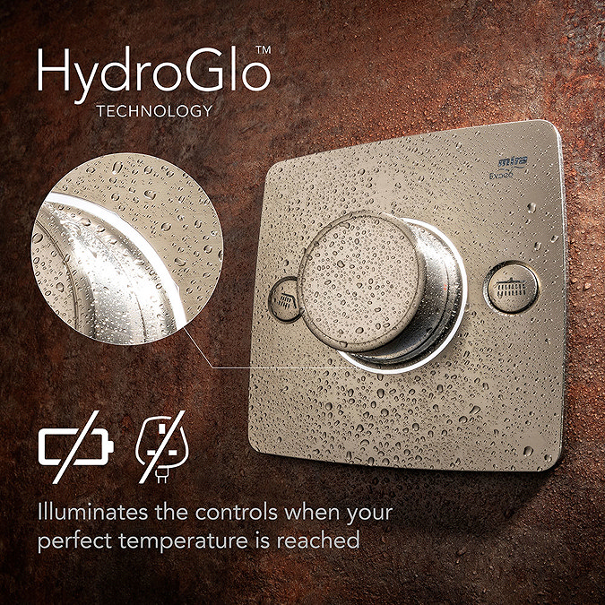 Ultra-sleek and fully-concealed, the Mira Evoco Dual Outlet Brushed Nickel Thermostatic Mixer Shower creates a refined, sophisticated look and feel. Enjoy style as clean and luxurious as your experience – featuring a fully-concealed shower mixer and indulgent double spray heads. With innovative Mira HydroGlo technology, illuminating at the perfect temperature.