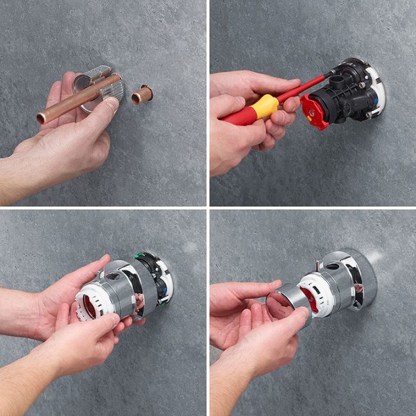 • Front of tile installation system allows connection to pipework during second phase fix after tiling is complete