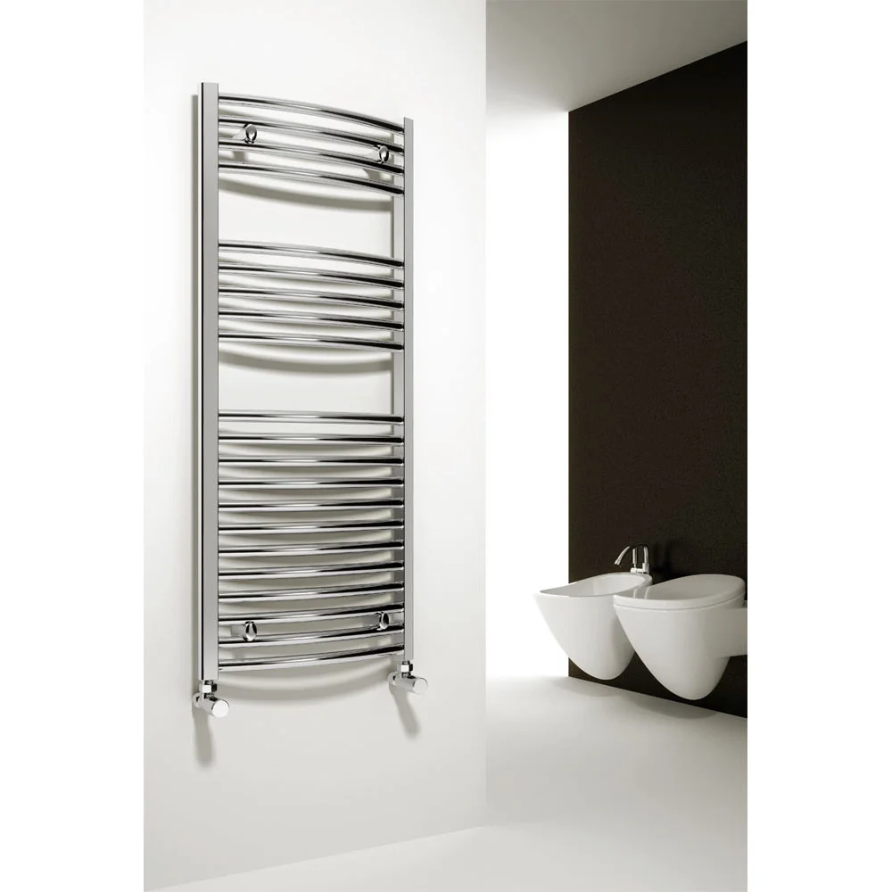 The Diva curved towel rail adds style to any room with its contemporary curved profiled ladder design and extensive choice of sizes. Hand crafted from high grade steel and finished in stunning chrome, each rail is individually leak tested and feature 25mm tubes for improved performance. Each rail comes complete with wall brackets, air vent plug and blanking caps. Comes with a 5 year guarantee against faulty manufacture.