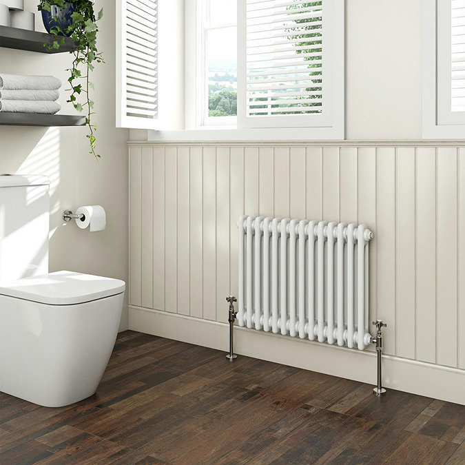 Enhance your bathroom with the stylish and functional Heating Co. 834 x 500mm Corso 2 Column White Radiator. Featuring a traditional double column design and a high-quality white powder-coated finish, this radiator seamlessly complements any bathroom decor. Crafted from durable mild steel, it includes all necessary fixings for wall-hung installation. Tested to British Standard EN 442, it is compatible with all UK heating systems, ensuring reliable performance. Please note, it must be fitted to a central heating system treated with a corrosion inhibitor for optimal functionality.