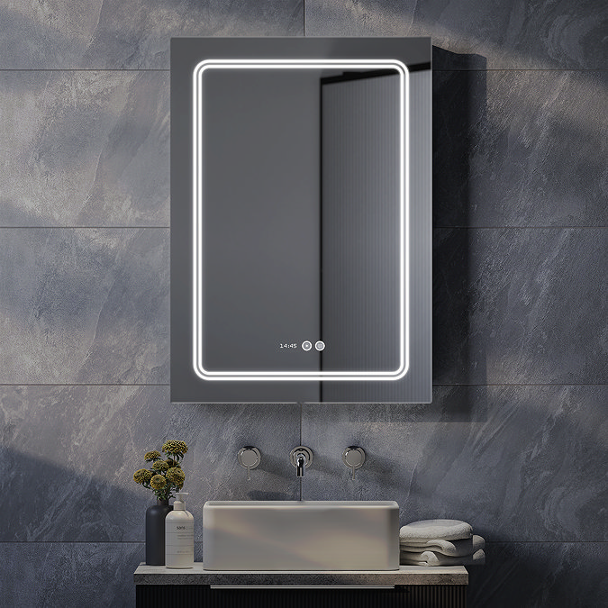 Enhance the aesthetic of your contemporary bathroom with this smart Toreno LED Illuminated Border Mirror. Eliminate the issue of misty mirrors with this illuminated bathroom mirror, equipped with a built-in demister for a clear reflection even in steamy conditions. This LED bathroom mirror, measuring 700mm in width, features a modern aluminium frame and is designed with a landscape orientation. It also includes touch sensor switches for immediate lighting and a digital clock to help you keep track of time.