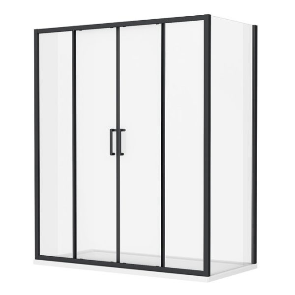 Toreno Matt Black 1400 x 800 x 1900mm Double Sliding Door Shower Enclosure with Pearlstone Tray