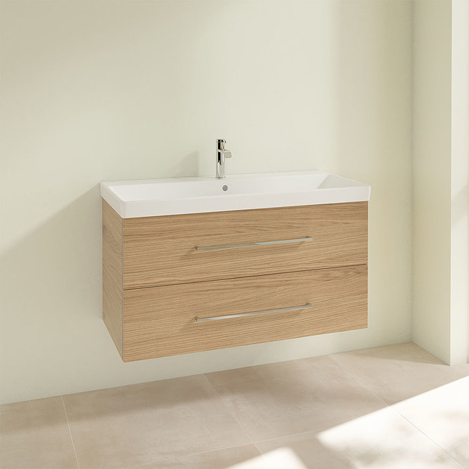 Villeroy and Boch Avento Nordic Oak 1000mm Wall Hung 2-Drawer Vanity Unit
