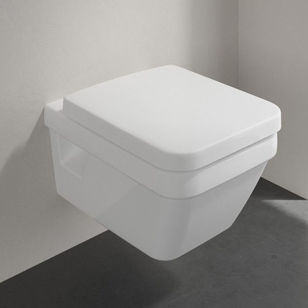 A stylish accompaniment to a modern, minimalist bathroom, the Villeroy and Boch Architectura Square Toilet and Concealed WC Cistern with Wall Hung Frame consists of a wall hung pan, soft close seat, wall hung WC frame with cistern and white flush plate. Made of durable, sanitary ceramic the elegant toilet is easy to maintain and will endure years of daily use.